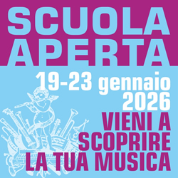 Dopo la ScuolaAperta a ottobre, come da consuetudine, ecco una seconda possibilità per conoscere le attività e i docenti della scuola e poter assistere alle lezioni individuali di strumento e ai laboratori di musica d'insieme (coro voci bianche, laboratorio orchestrale, rock band e jazz band).